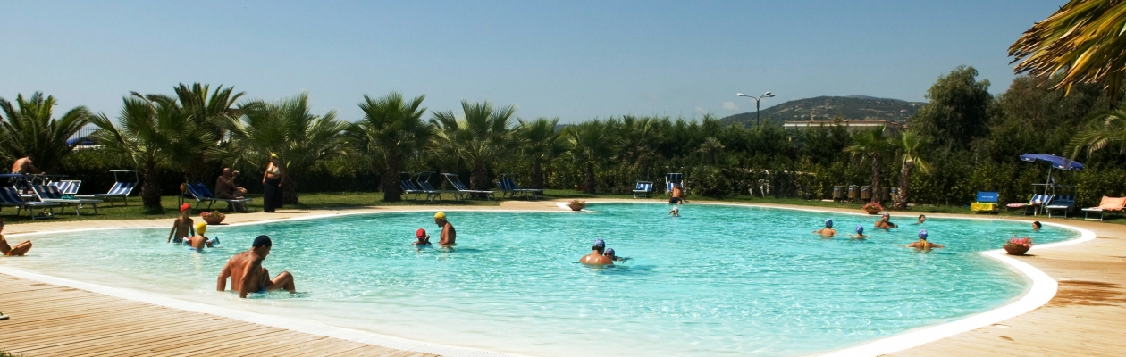 In una splendida area verde si trova la moderna piscina, con bordi antiscivolo e fondale con diverse profondità per far divertire grandi e piccini in tutta sicurezza sotto lo sguardo attento di un bagnino qualificato.